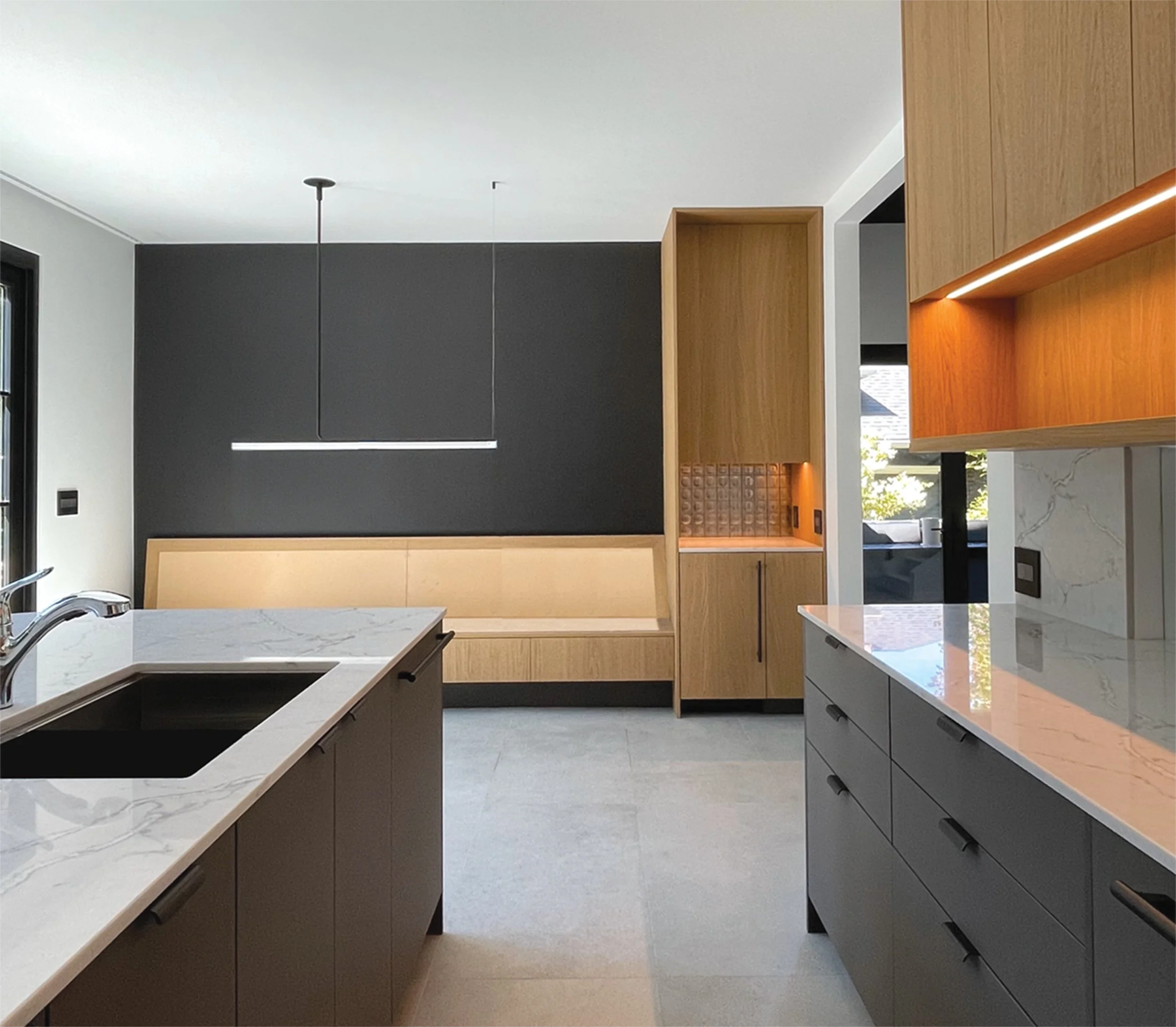 High pressure laminate slab doors with matching or contrasting edge bands. Laminate colors shown are available with a matching or white liner back. These colors are only a small sampling of the colors available. Horizontal grain is available, but limited to 47" high.